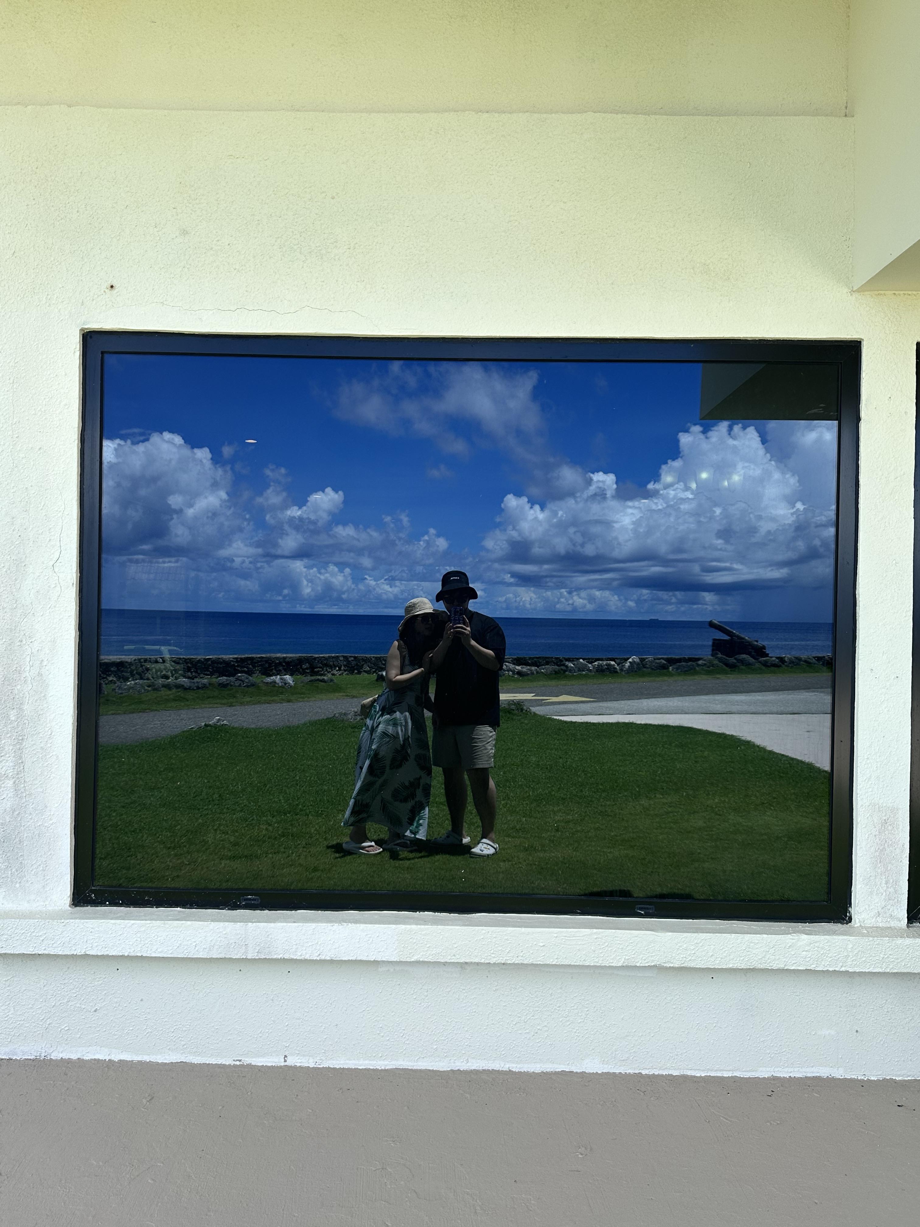 총독 관저 광장에 있는 GUAM 조형물 앞에서 인증샷을 찍습니다.
