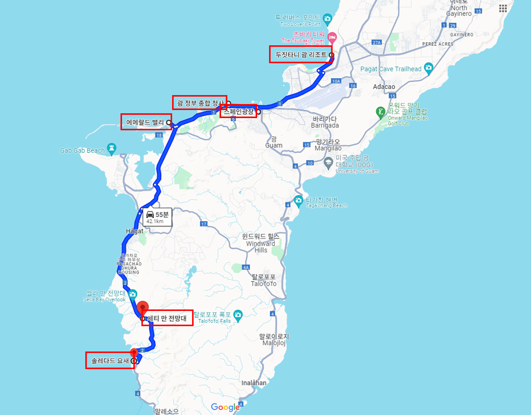 스페인 광장, 괌 정부종합청사, 에메랄드 밸리, 세티베이전망대(세티만전망대), 솔레라드 요새