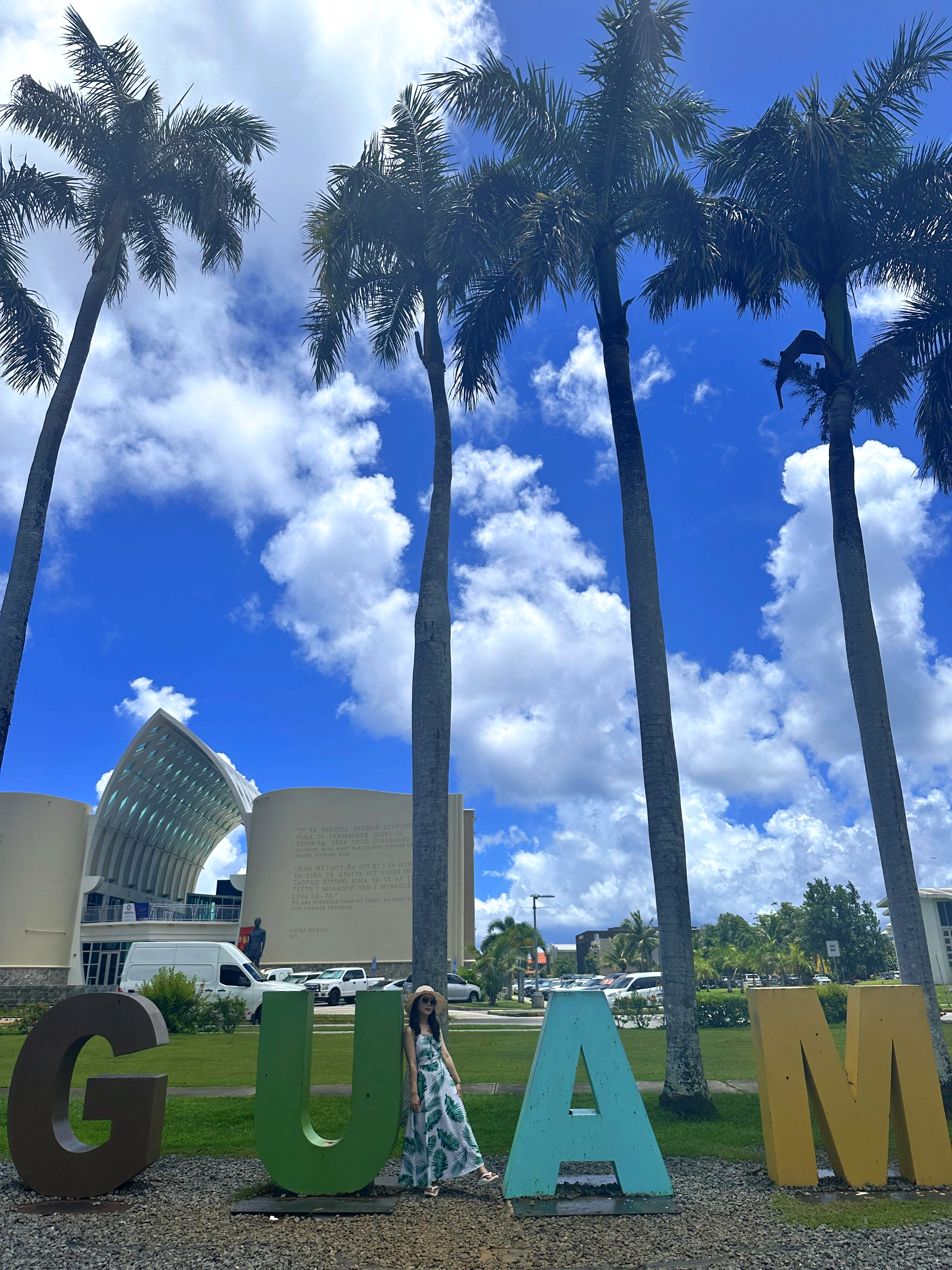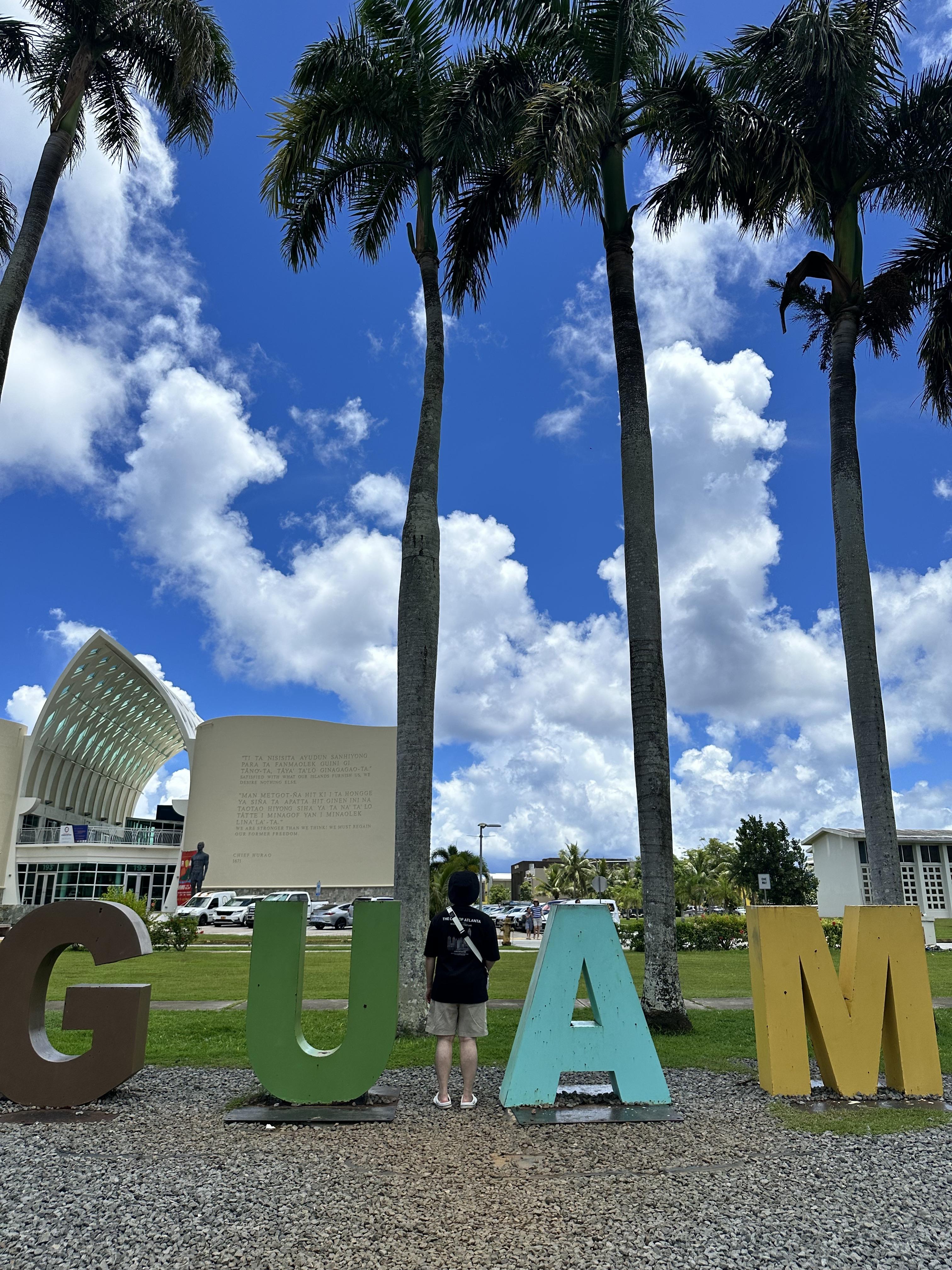 광장 앞에있는 GUAM 조형물에서 인증샷남기고
