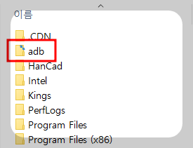 해당 폴더의 이름명을 adb로 바꿔줍니다.