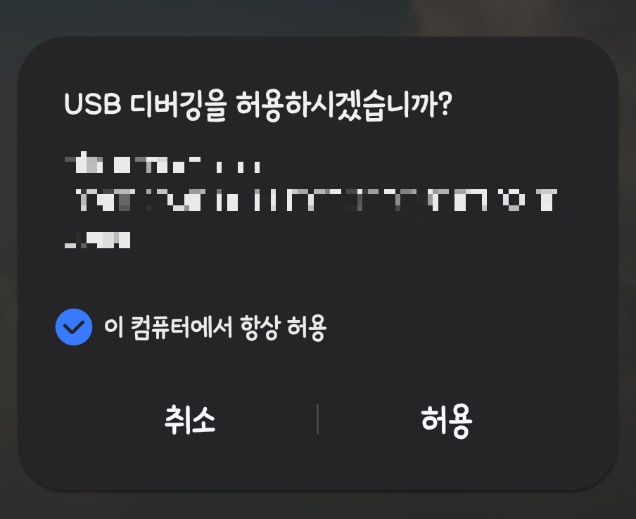 USB 디버깅을 허용하시겠습니까? 확인 눌러주세요!