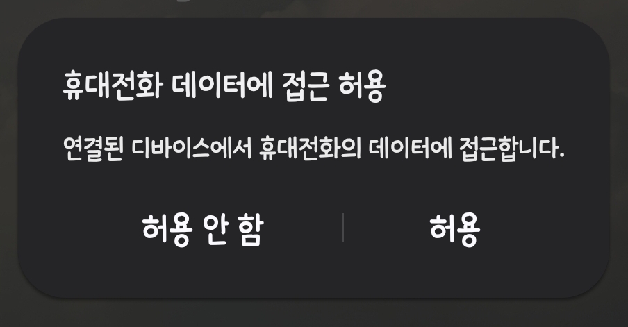 컴퓨터와 PC를 연결하게되면 휴대전화 데이터에 접근 허용 문구가뜨게되는데 허용을 눌러주시고
