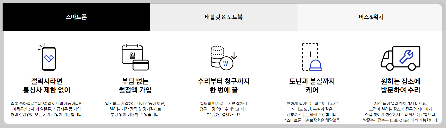 삼성케어 홈페이지에서 가입하기가 가능하지만