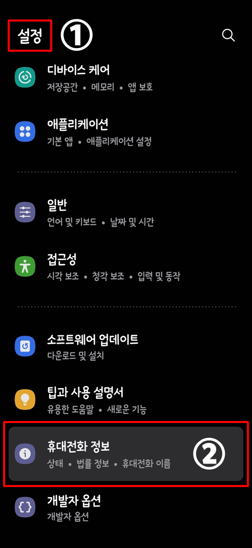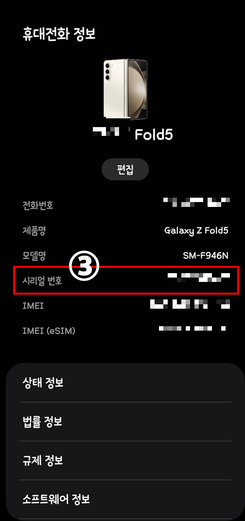 스마트폰에서 [설정 - 휴대전화 정보 - 시리얼번호]