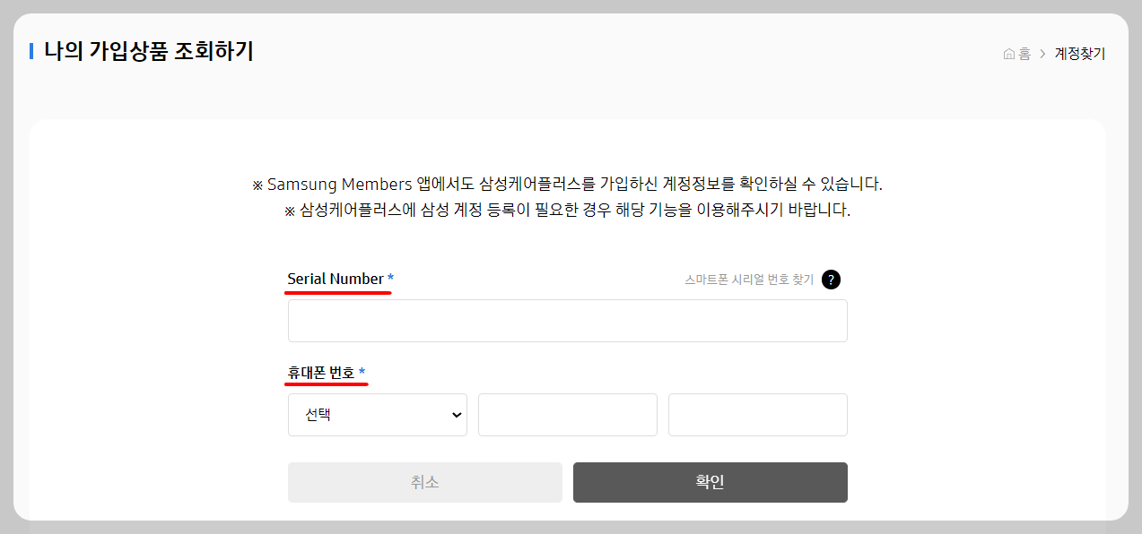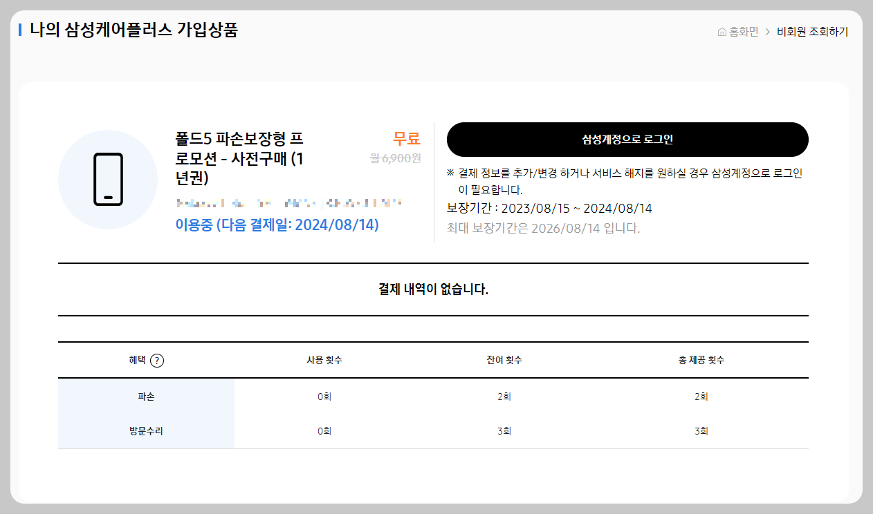 삼성케어플러스(Samsung Care+) 가입여부 조회