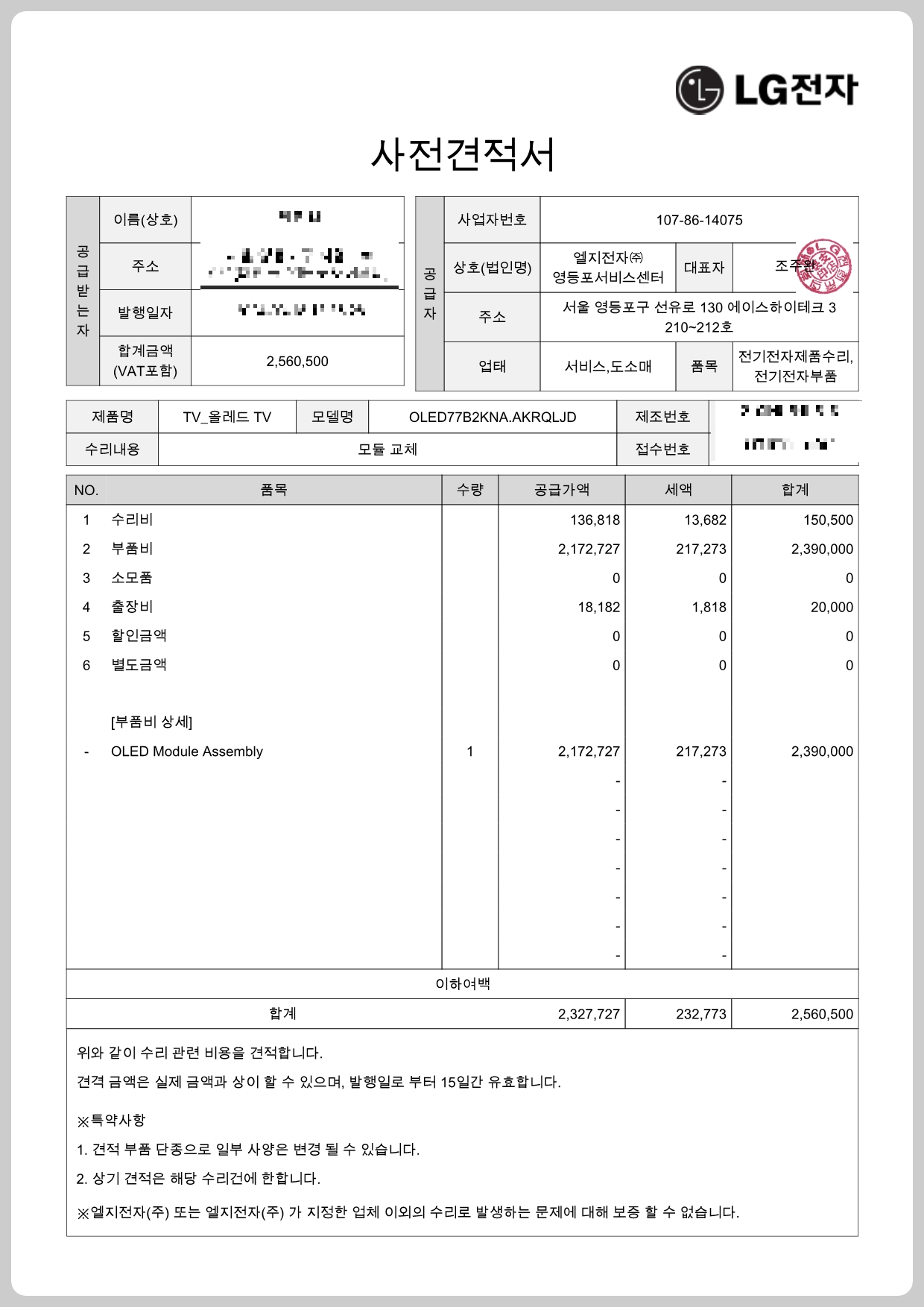 2. 77인치 OLED TV 액정파손 "수리" 후기 (OLED77B2KNA)