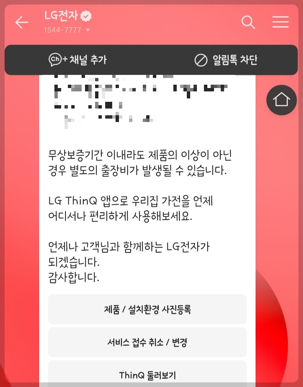 LG에 출장접수되었다는 카톡이 날라오네요..
