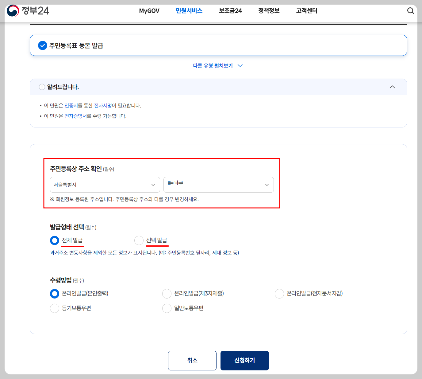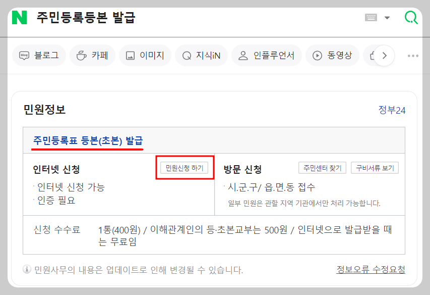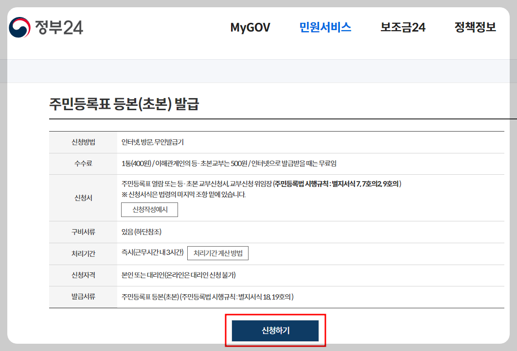 주민등록표 등본(초본) 발급 | 민원안내 및 신청 |정부24