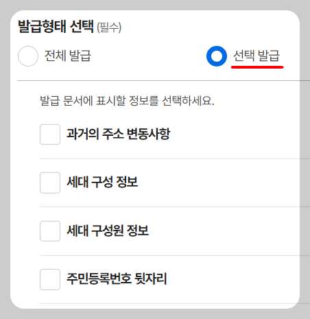 전체발급은 세대정보, 주민등록번호뒷자리 등