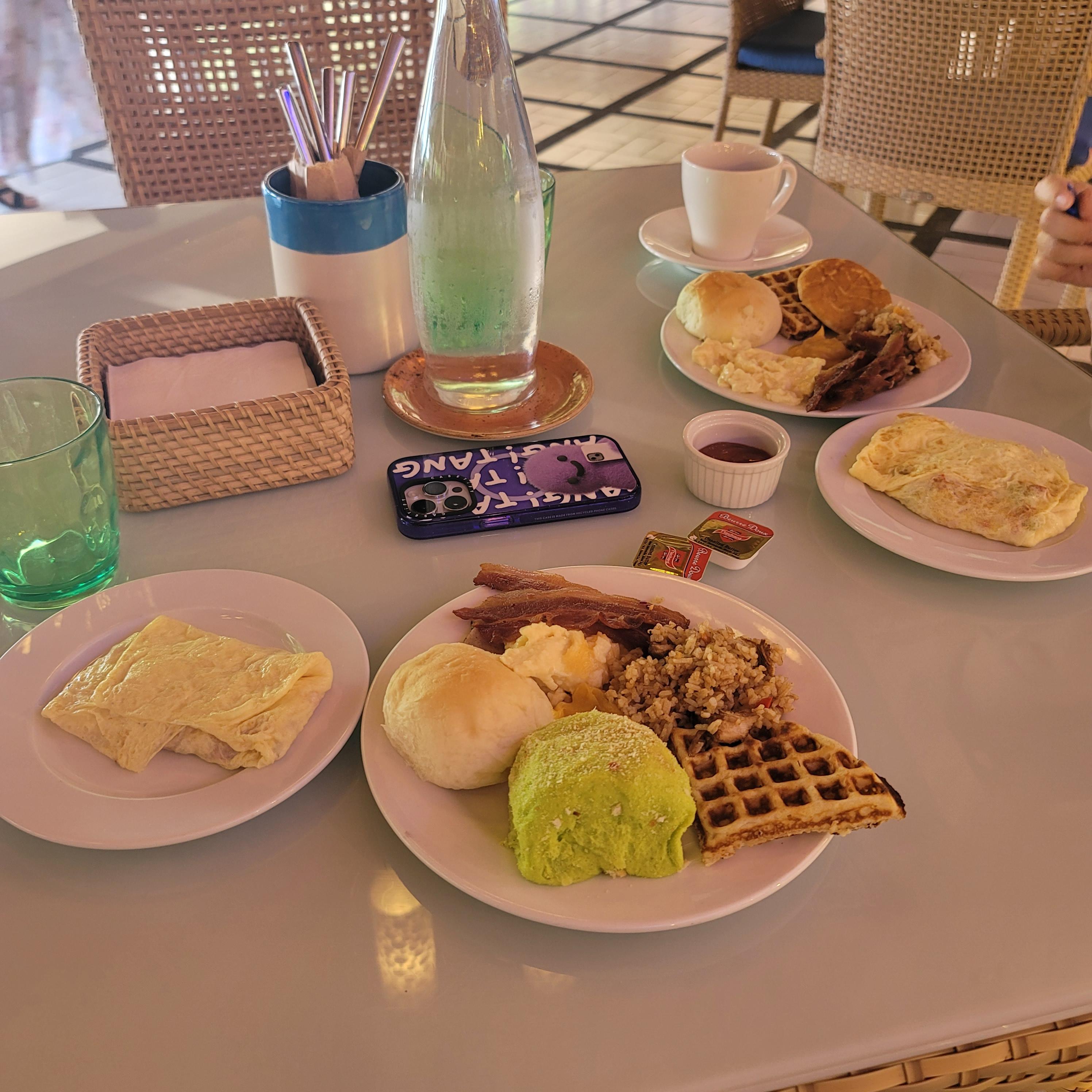 다음날 아침에 메인풀 옆에서 조식을 즐깁니다.