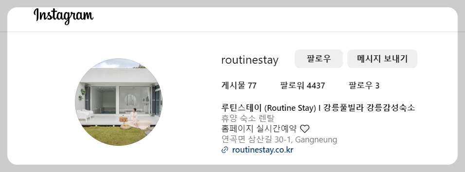 루틴스테이(강원도 강릉시 연곡면 삼산길 30-1) 네비 찍고 오실 때,
