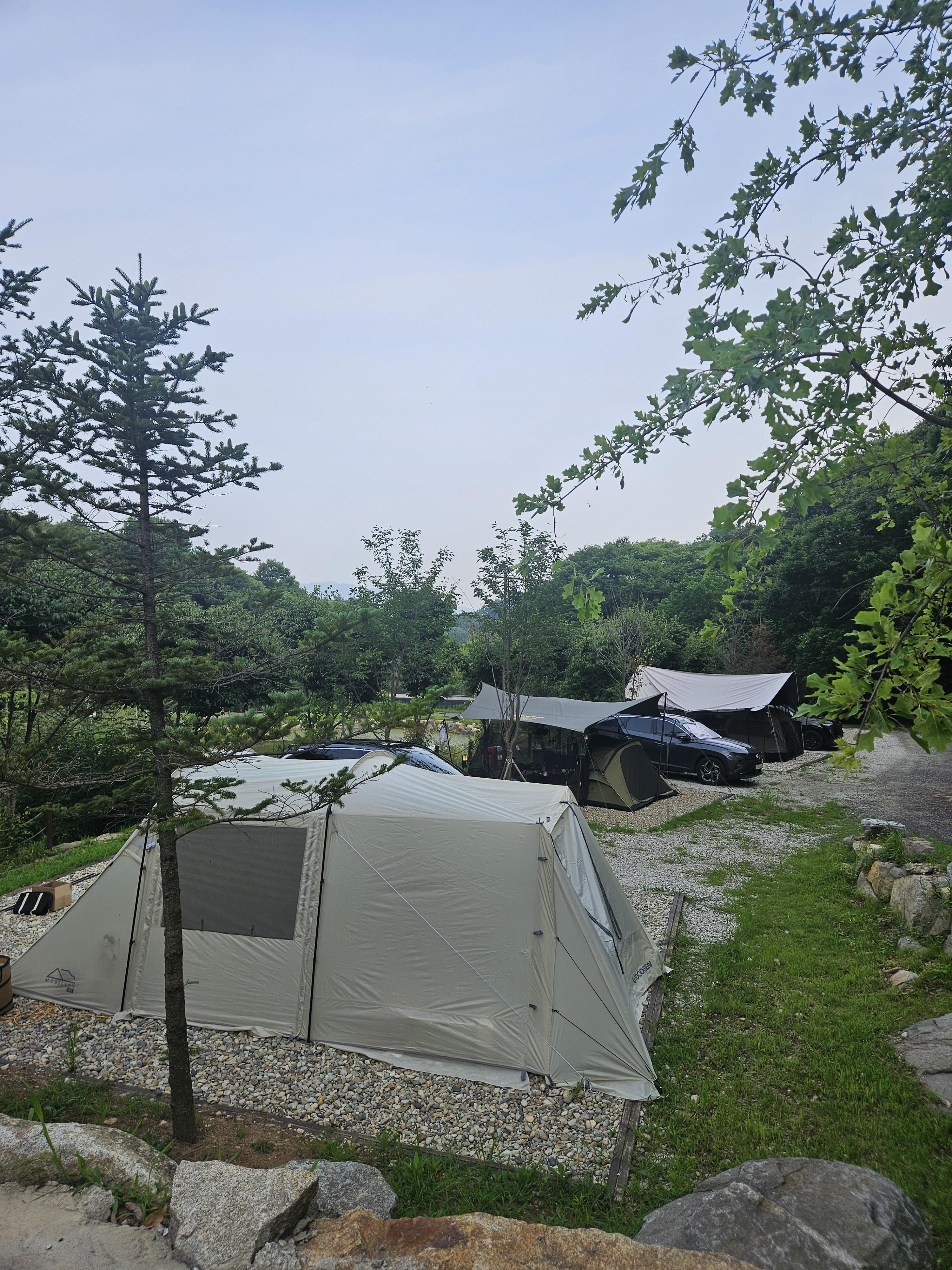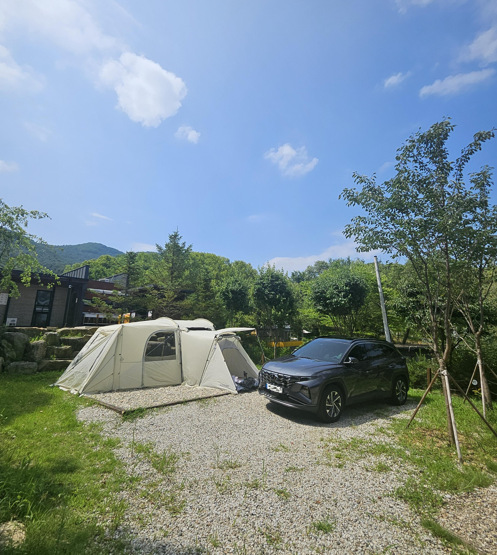 7번 사이트에 텐트피칭 후 옆에다가바로 주차할 수 있어