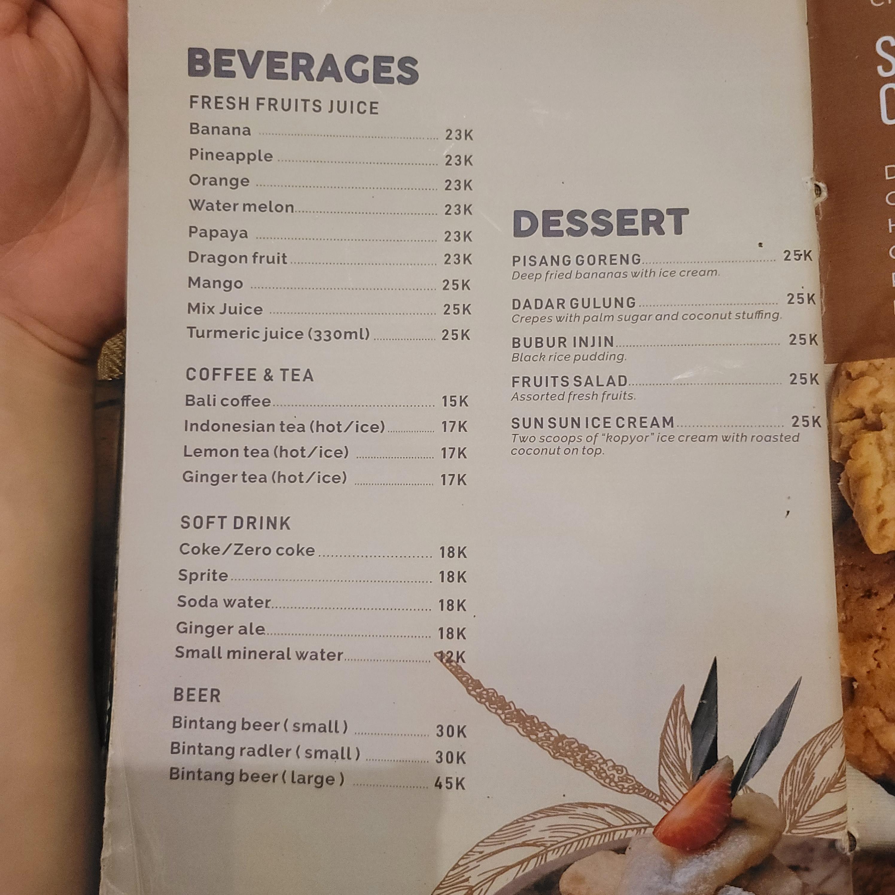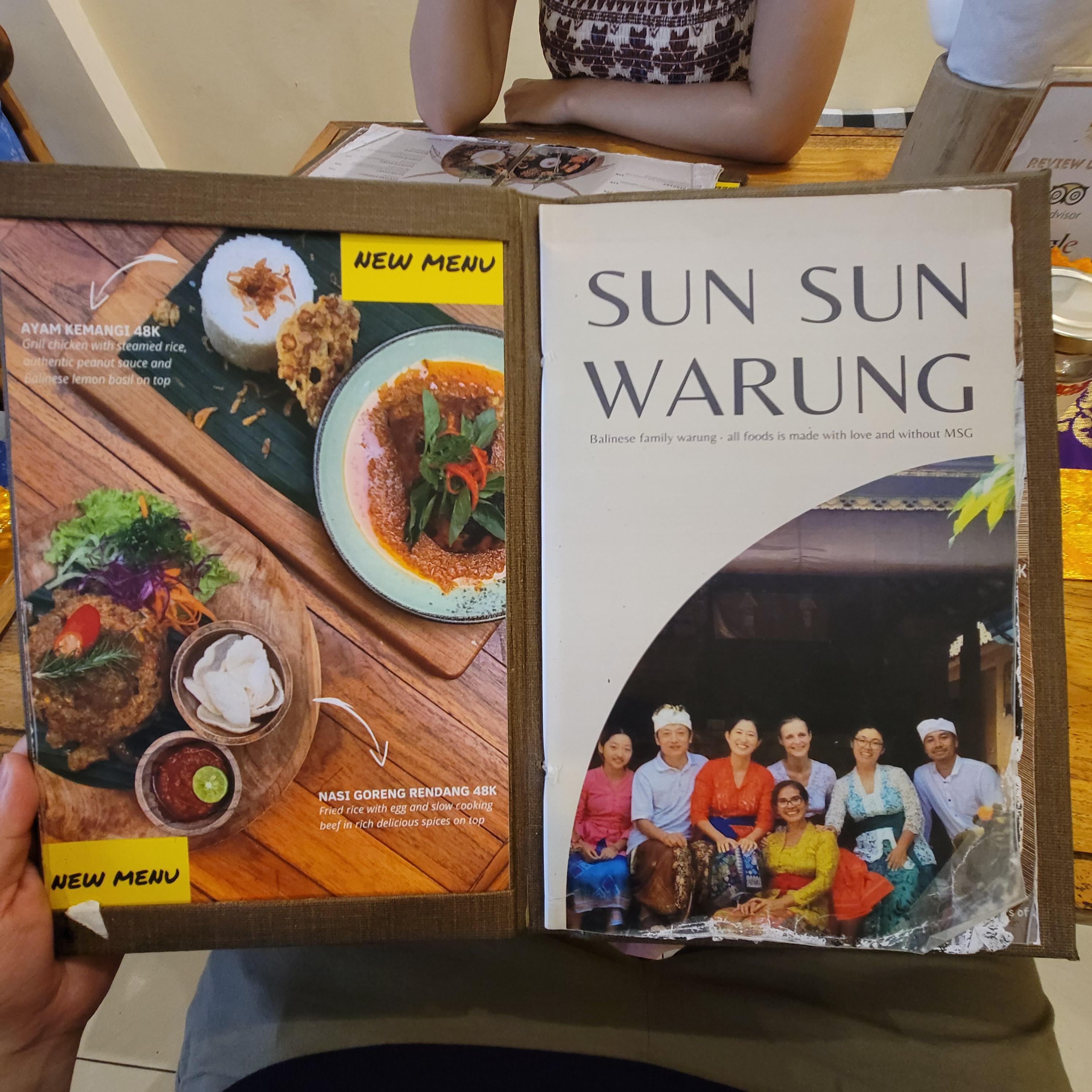 💖 발리 우붓 선선와룽(Sun Sun Warung) 메뉴